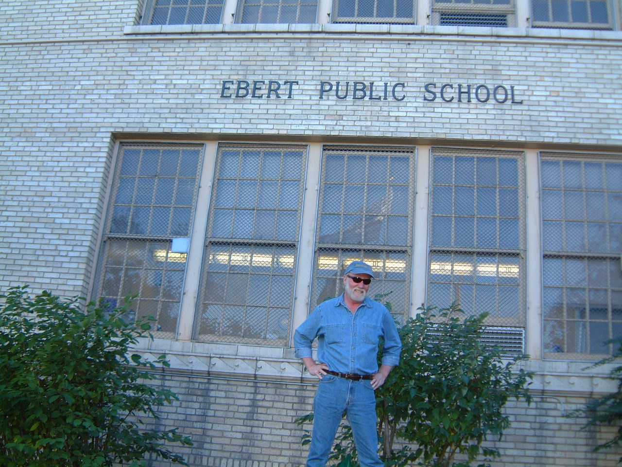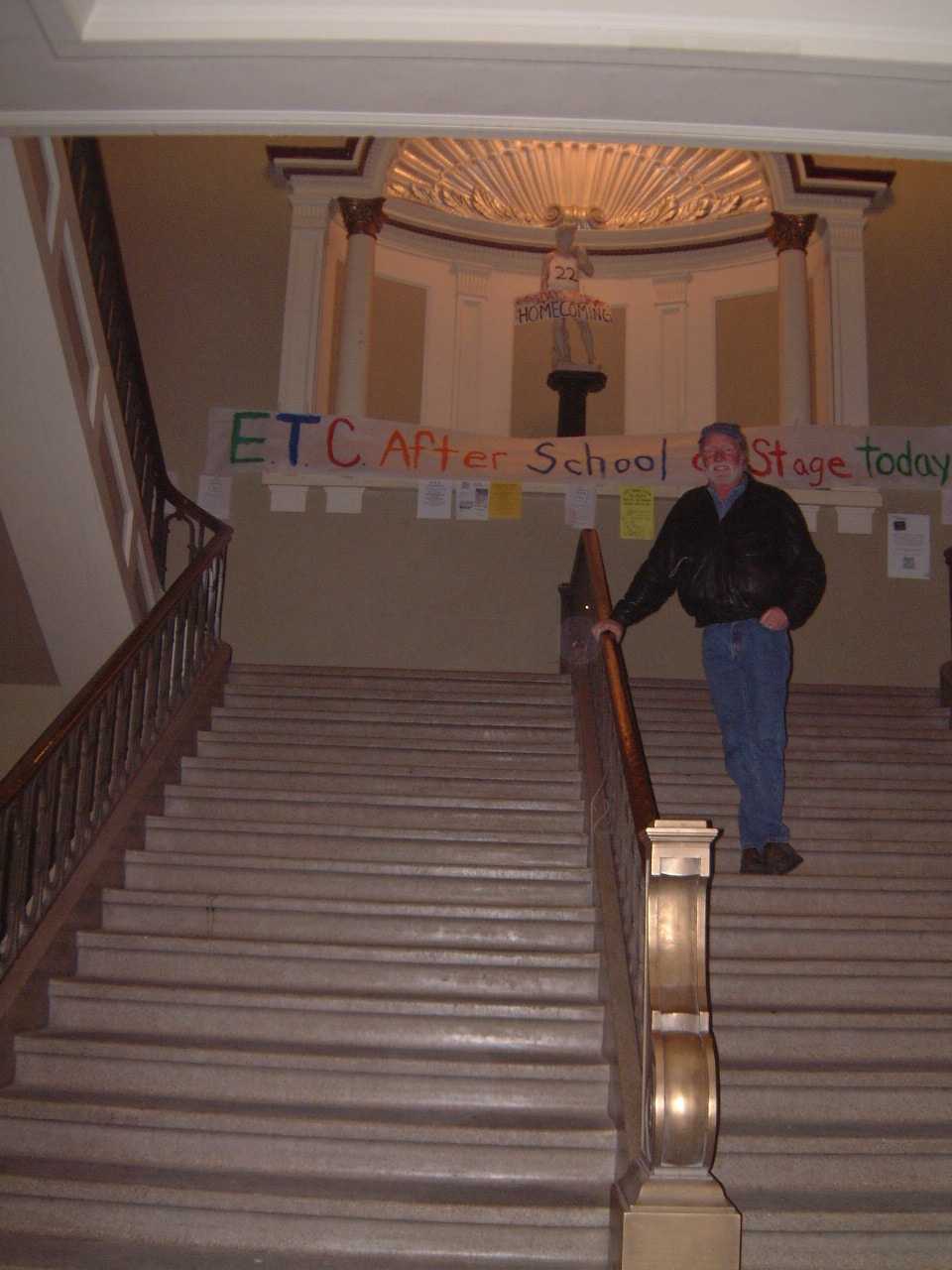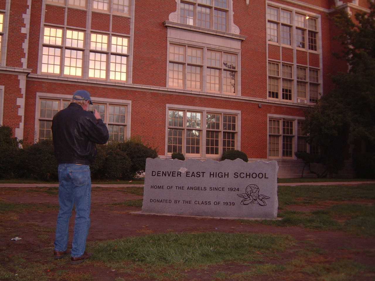 search of the old Dean Moriarty we never found.” Denver Blog John cooking. John taking photo of EDHS. Neal must have slid down this bannister. Inside the HS built in 1924. East Denver High School. Old Homestead Note how the lattice work formed the shadows. Myron and John with photo of building