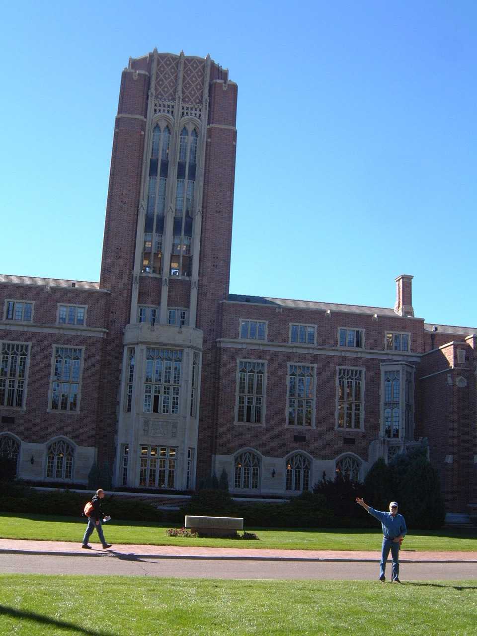 In front of the old homestead Carolyn's University Carolyn's University of Denver. Carolyn's School. Photos at Colburn Toasting Neal Carolyn. At the bar at the Colburn. The elevator at the Colburn. The Colburn. Paul pointing out the Colburn. Hey Ma! Hey dad! Carolyn's room below the open window with plants.